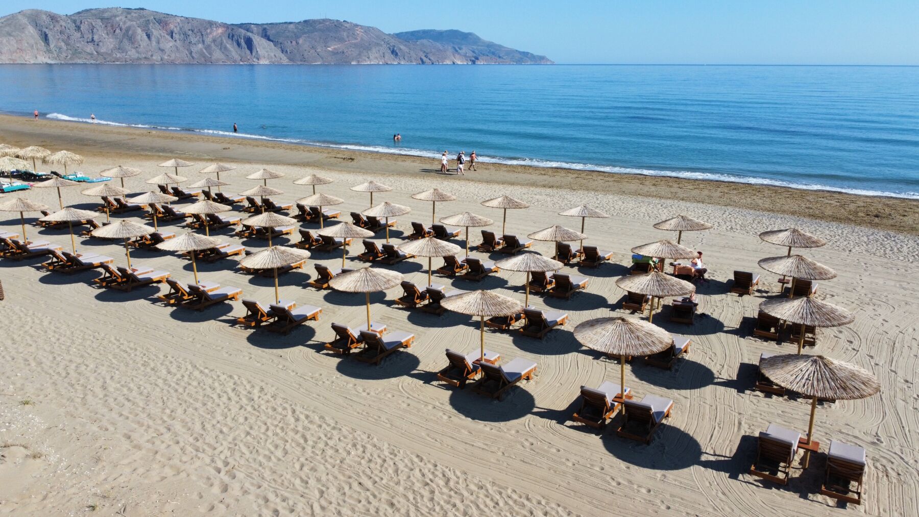 Ranked among the finest beaches in Crete and Europe, Kournas Beach welcomes you with its signature golden sand, crystal-clear shallow waters, and breathtaking views. Nestled between Rethymnon and Chania, this Mediterranean jewel is framed by lush olive groves, natural springs, and the majestic White Mountains.